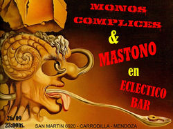 ![]() En un viejo lavadero de autos, Monos Cómplices se presenta junto a los amigos de Alter Ego para despedir el año rockeando... | ![]() En la casa del Rock... Bananarana recibe a los "Monos" junto con "Tierra Seca" como banda invitada. Fría noche de Julio que no amedrentó a los fieles amigos. | ![]() Rock de las entrañas... En Leyenda bar "Monos Cómplices" se presenta en una gran noche junto a los amigos de siempre. |